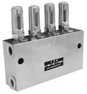 该系列双线分配器给油口都在底部,分配器活塞正反向动作均从同一给油口排出润滑脂,还可以从指示杆的动作直接观察分配器的工作情况,同时还可通过调整螺钉在规定范围内方便地调整各个给油口的给油量。