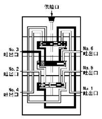 | 7、流入的润滑剂推动活塞A 向右运动、右腔的润滑剂压向NO.6吐出口,经外部配管送向润滑点。当活塞A移动到至右极限时返回到初始1状态,继续重复上述动作。 |