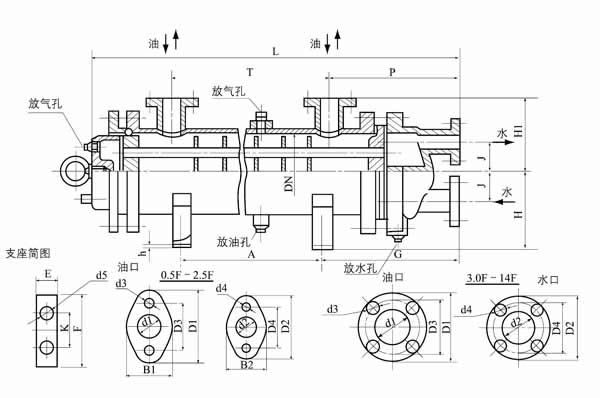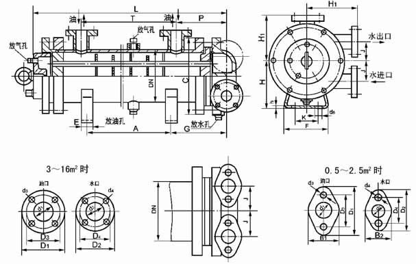 与GLLQ型列管式冷却器相似,产品适用于冶金、矿山、轻工、电力、化工等工业部门的液压与润滑装置,将热工作油冷却到要求的温度;冷却器的设计最高温度为100℃~120℃,工作压力≤1.6MPa,传热系数为348~407w/m2.k,(若采用翅片管换热,则传热系数为523~580W/m2·k,但允许介质粘度为10~50cSt)。下面列出的LQ型冷却器则规定介质粘度为10~326cSt,主要技术参数如下表: |