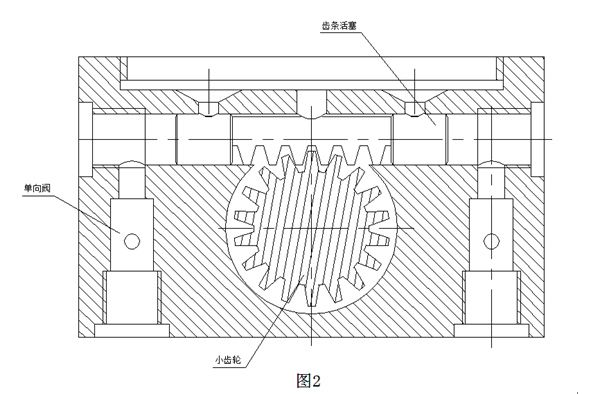 其工作原理是:扳动手柄,通过齿轮轴上的小齿轮(如图2)带动齿条活塞作往返复运动。当活塞处于右端极限位置左行量,润滑脂通过单向阀经过换向阀被压入主油管,当滑动活塞行程终了,到达左端极度限位置时,滑动活塞右端的腔室又被贮油器中有润滑脂所充满。当滑动活塞再向右移动时 ,滑动活塞右端的单向阀,经换向阀而被压入主油管,这样继续扳动手柄,油泵将不断地往复运动,把润滑脂不断地压向各组给油器。