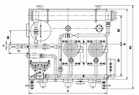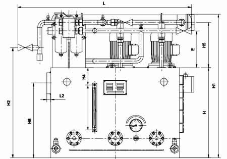 ≥250L/min稀油站,采用蒸汽加热油箱中的润滑油,仪表盘尚多一检测冷却器进出水管压差的仪表,其主要部件均另外装于基础上;而≤125L/min稀油站的全部部件都装在油箱上,为整体式结构。 |
